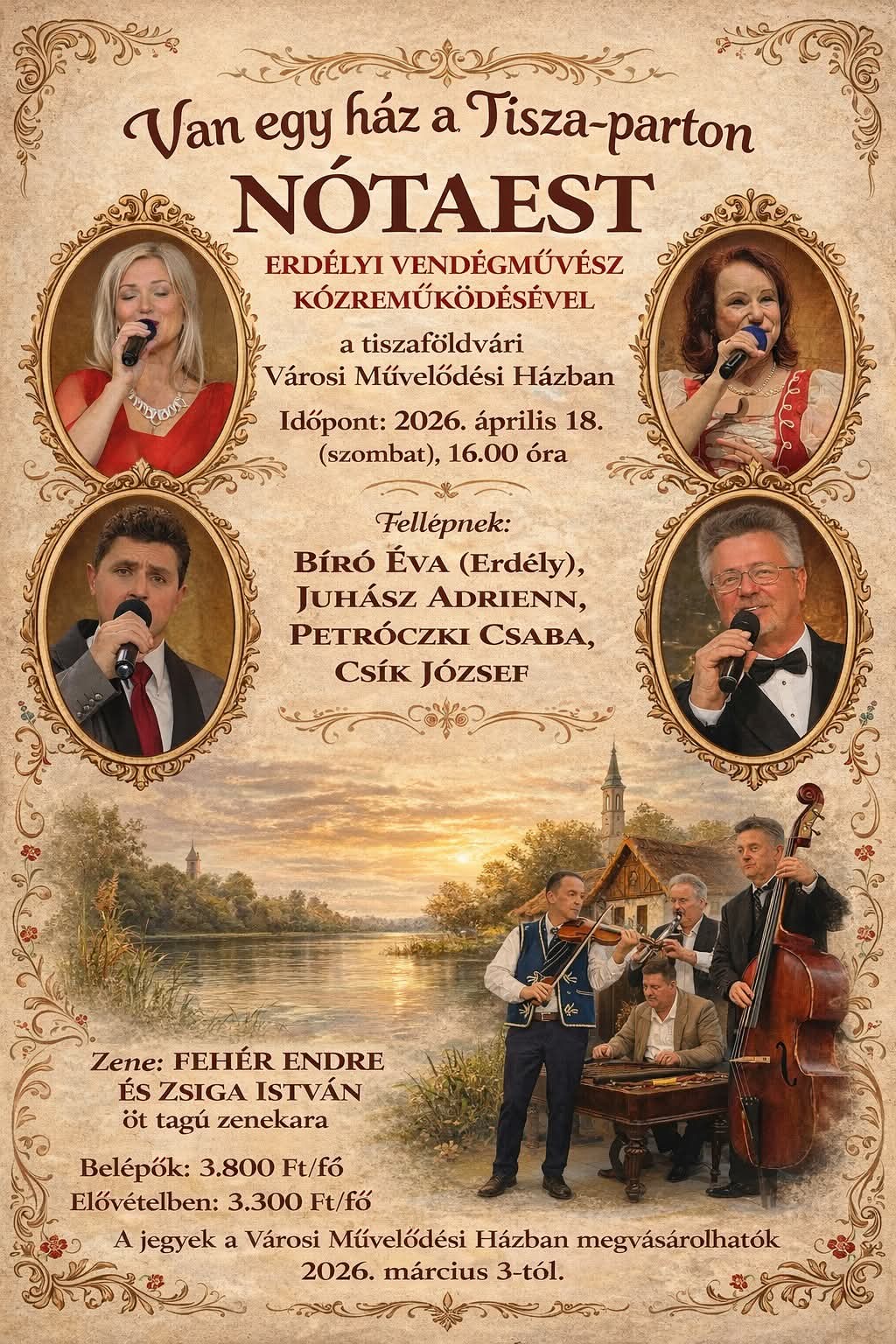 „Van egy ház a Tisza-parton” – Nótaműsor Erdélyi vendégművésszel