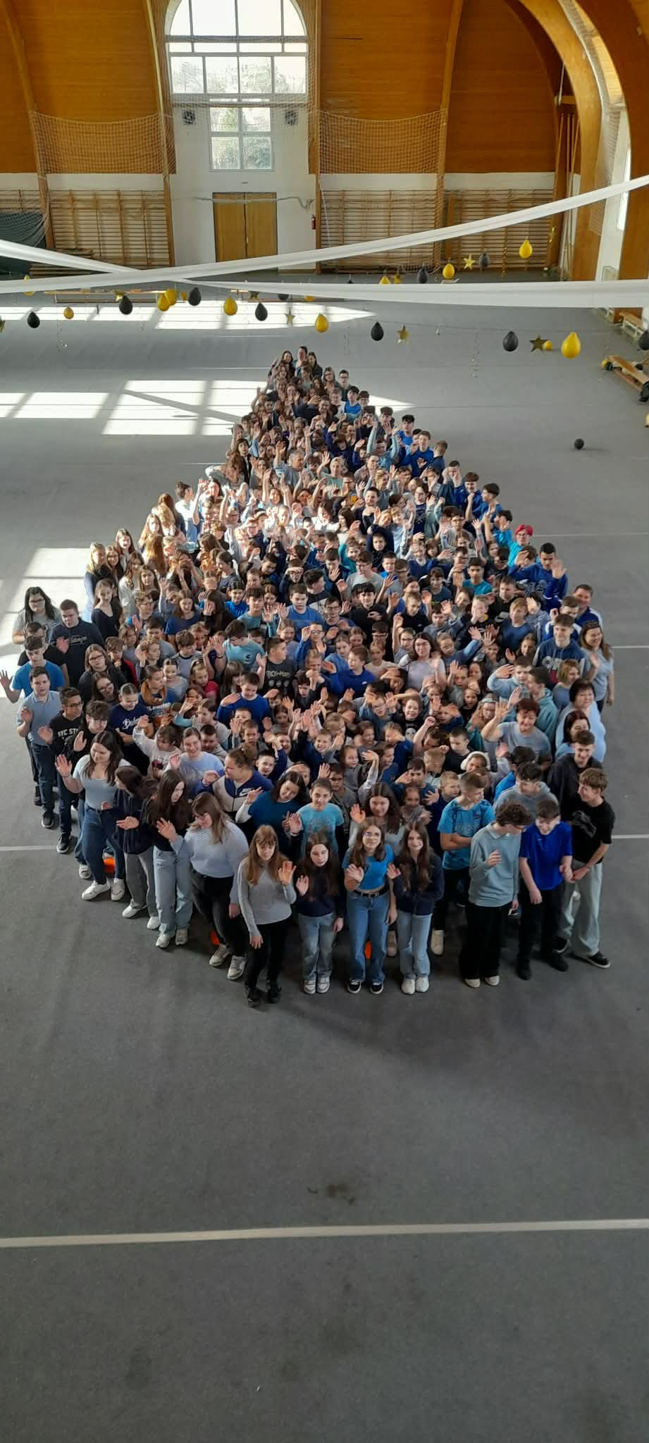 ​Az intézmény minden tagja összegyűlt a tornateremben, hogy közösen alkossanak meg egy szimbolikus jelképet.